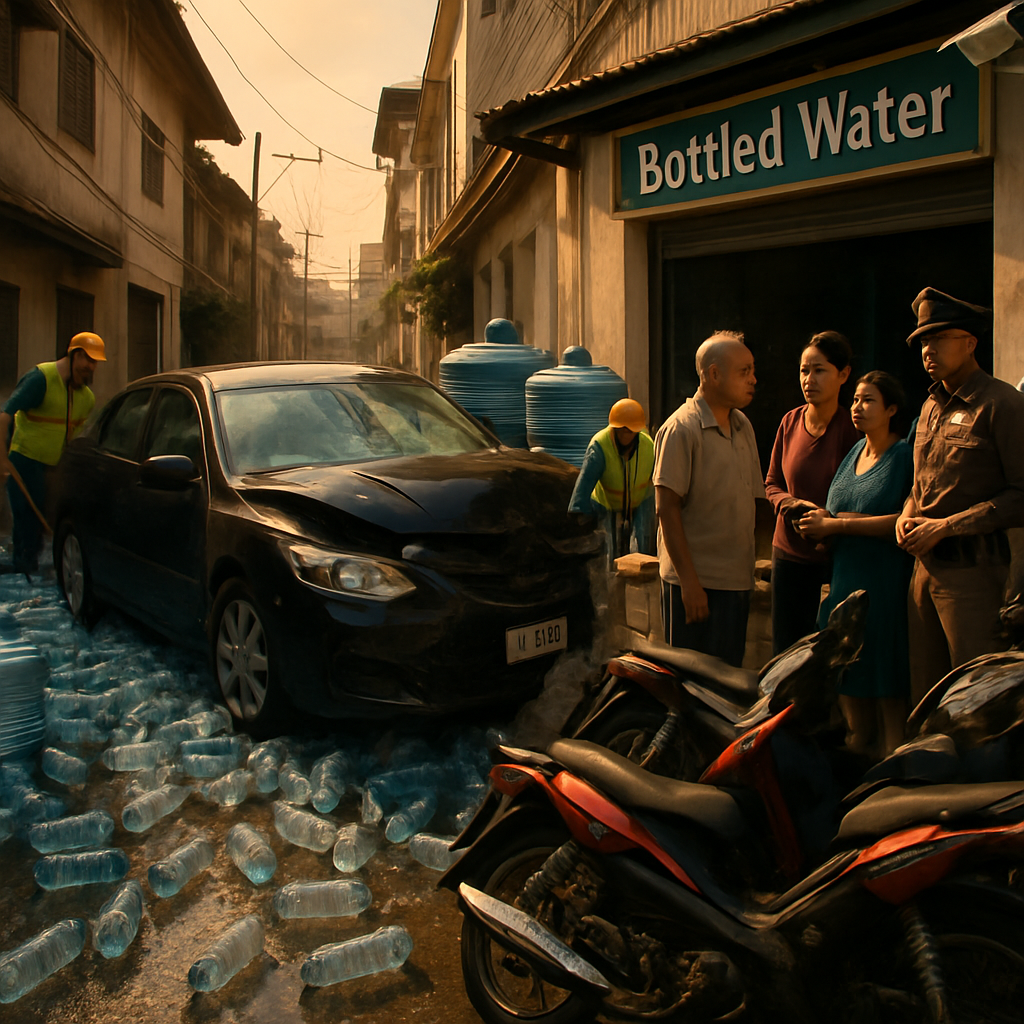 When Noodles Turned Nerve-Wracking: An 80-Year-Old’s Unplanned Detour into a Trat Water Factory It was supposed to be a simple noodle break. Instead, an ordinary evening in Ban Nong Bua, Wang Krachae subdistrict, Trat province, turned into a scene straight out of a slapstick action clip — only thankfully without casualties. CCTV footage shows a black sedan gliding into a narrow alley beside a bottled water factory, then suddenly veering off course, clipping a row of parked motorcycles and smashing into massive water tanks and the factory wall. Glass shattered, plastic bottles exploded like confetti, and the front of the car was left looking as if it had been through a cyclone. Debris even ended up perched on the car’s roof and bonnet — a chaotic snapshot of an unusual accident. The driver and his version The driver, identified as 80-year-old Mitr, was still at the scene when police from…