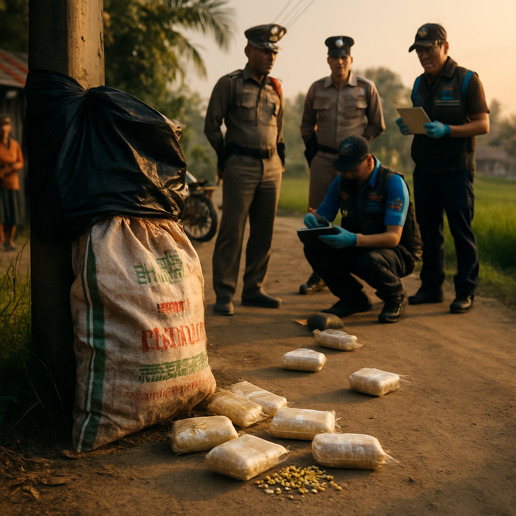 It started as a small, ordinary mystery on a quiet alley in Chachoengsao province — a nondescript sack tucked at the base of an electric pole that, at first glance, could have been trash. By late morning on 25 January 2026, that ordinary sight had been revealed as something far more alarming: roughly 230,000 methamphetamine pills wrapped in plastic and hidden inside a fertiliser sack, abandoned where villagers walk and drive every day. Residents of Moo 8, Ban Song subdistrict in Phanom Sarakham district were the ones who spotted the suspicious parcel at around 11:00 am. They noticed a black bin bag draped over what looked like a fertiliser sack beside the roadside alley — a thoroughfare used regularly by people coming and going from the community. Concerned that the package might contain something hazardous, they called local authorities rather than taking a closer look themselves. Pol. Lt. Col. Wisarut…