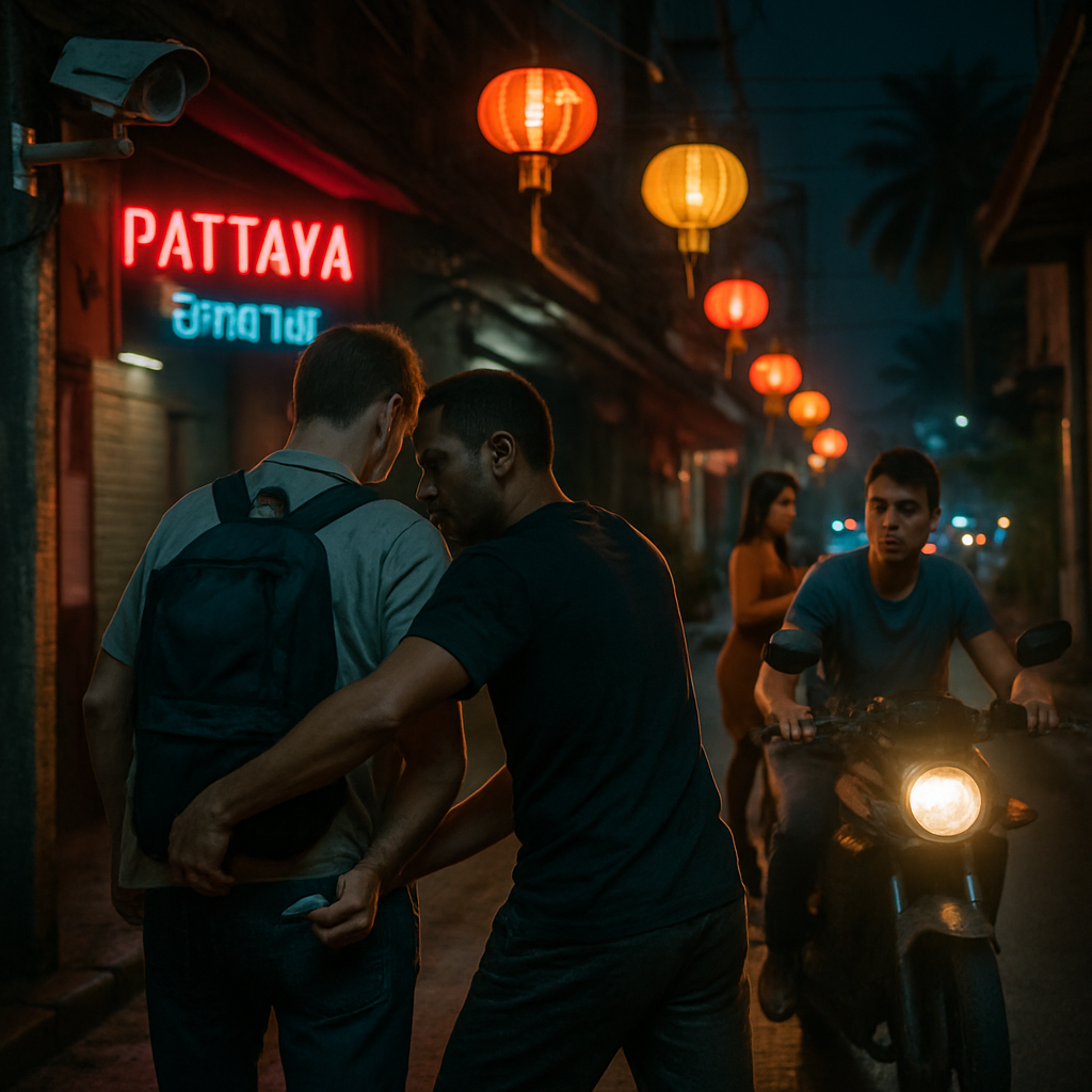 It was supposed to be another balmy evening in Pattaya — lanterns blinking, motos humming and the promise of seafood and sea breeze — but for 45-year-old Mohamed Abdelkaliq Abdalla Khadim Almaazmi, a tourist from the United Arab Emirates, the night turned sticky with the shock of loss. In mid-January, Almaazmi discovered he was lighter by 14,500 baht after an encounter in a quiet alley near the Marine Plaza Hotel that played out like a sleight-of-hand trick gone wrong. The Casual Approach: Conversation as Cover According to the complaint filed at Mueang Pattaya Police Station at about 7 a.m. on January 13, Almaazmi had been standing by the roadside in southern Pattaya talking with a woman when a stranger — one of two foreign men — strolled up, exchanged pleasantries and leaned in like an old friend. The encounter looked harmless: a warm greeting, a brief embrace, a little chat.…