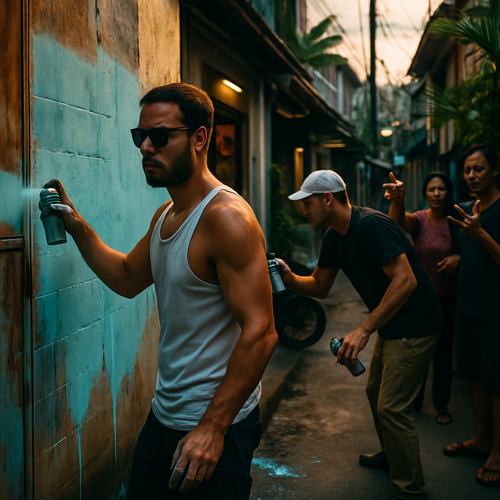 When a Phuket local posted grainy photos of two foreign men spray-painting walls around Kata, the island’s online neighbourhood quickly ignited. The post — shared on December 15 by Facebook user Yotwadee Panthong in a group for Phuket residents — showed two men caught mid-spray, cans in hand and paint on fingers, leaving fresh streaks of pastel blue across walls and a rusty door. The caption didn’t mince words: “Can anyone take action against these foreigners? They have gone too far, spray-painting everywhere. Shops in Kata should not sell spray colour so easily. Is this graffiti, art, or just rubbish? Who allowed this to happen, and is it even legal?” The pictures are telling. One man, in a white tank top, black trousers and sunglasses, posed in front of a newly painted swathe of light-blue paint. The other, wearing a black T-shirt, beige trousers and a white cap, was photographed…