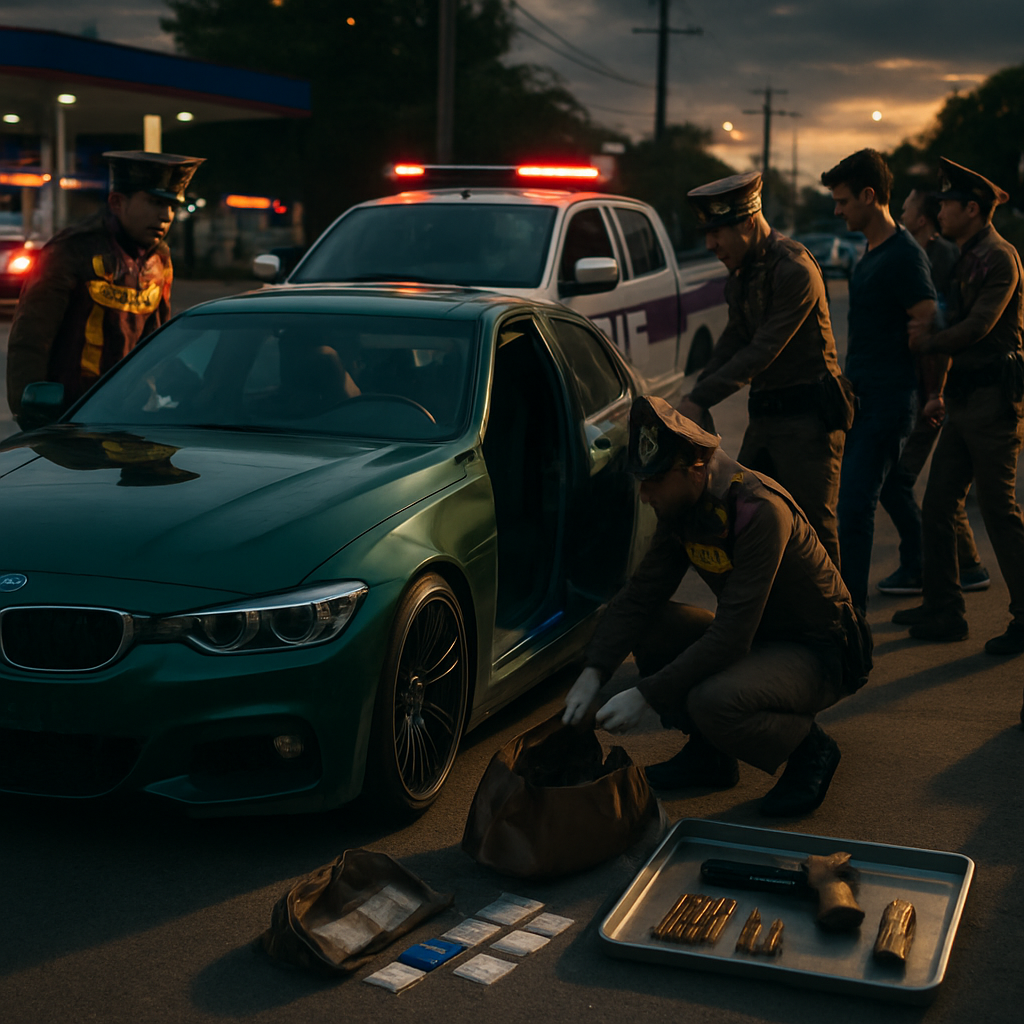 Bangkok Checkpoint: Guns and Drugs Found in Green BMW, 3 Detained