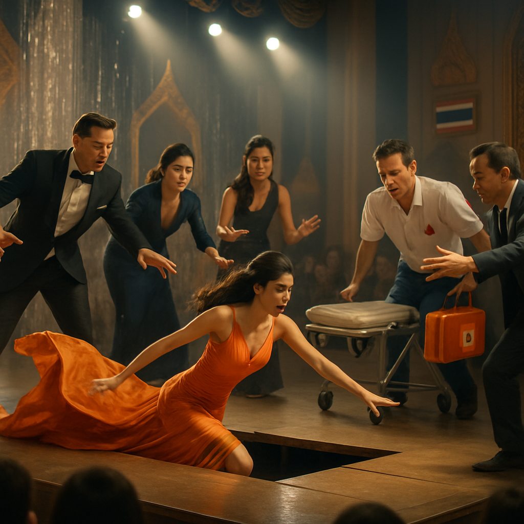 Video that quickly went viral shows Henry gliding in an orange evening gown when she trips near the edge of the stage and, alarmingly, plunges through an open section beneath the platform. Members of the Miss Universe Thailand team, led by director Nawat Itsaragrisil, rushed to her aid — an unsettling reminder of how quickly a poised pageant moment can become an emergency.