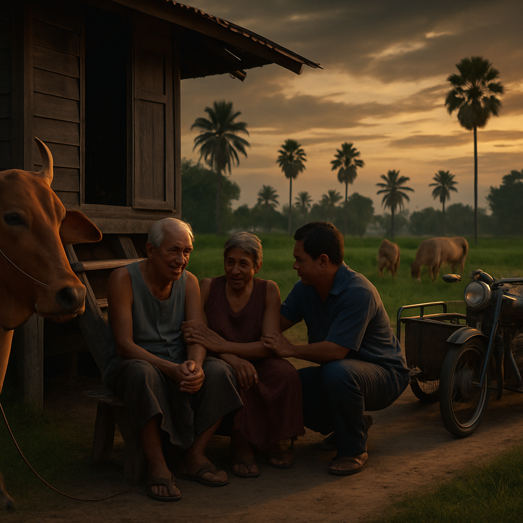 Neighbors described a quiet scene interrupted by confusion and alarm. San, 68, a local who was out moving his herd, told reporters he was guiding four cows back into a pen on a motorcycle fitted with a sidecar when he noticed Khian’s cow breaking away and coming toward him in the opposite direction—without its owner nearby. Moments later he found Khian collapsed in a grassy patch by the roadside and called emergency services at 1669.