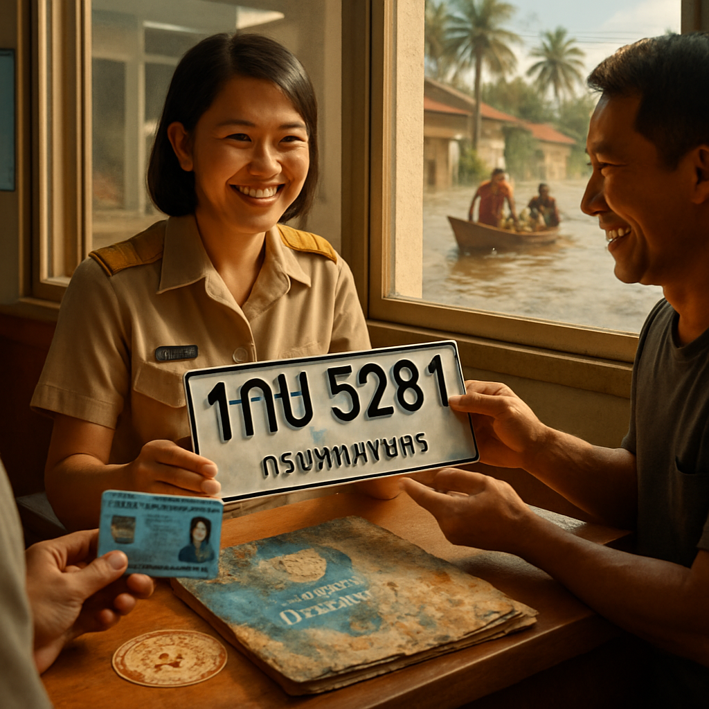 Department of Land Transport (DLT) Director-General Sorapong Paitoonpong explained the new approach: if your licence plate, tax sticker (those round discs), or registration book was lost or damaged in the floods, you can apply for replacements with much less red tape. In simple terms:
